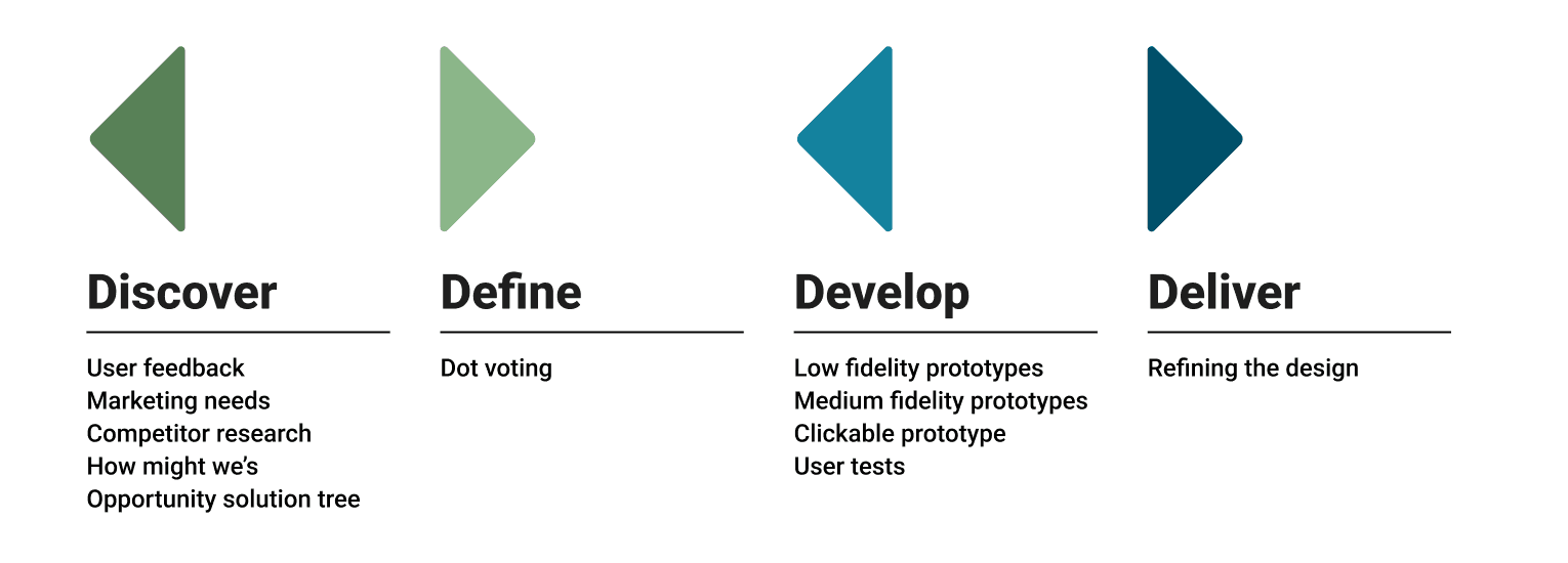 Ik heb het double diamond model gebruikt als proces om zo itererend tot het beste resultaat te komen.